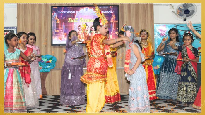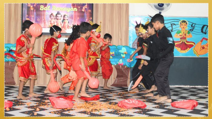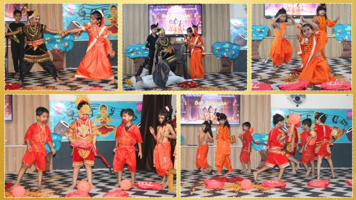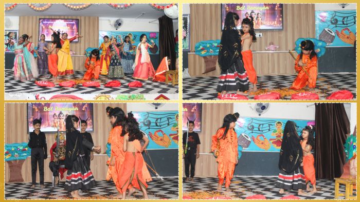 A delightful presentation of Bal Ramayan was organised by our talented Dance teacher, Ms. Sita, featuring the enthusiastic participation of students from Classes I and II. The young performers beautifully depicted the epic journey of Lord Ram — from his birth in Ayodhya to his triumphant return with Sita and Laxman after the vanvas (exile).