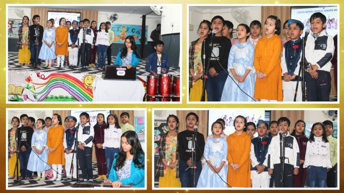 A short and delightful skit was performed by the students of Class II, which was appreciated by everyone for its neat execution and confident presentation. To further enlighten the occasion, Nirmit Sharma and Ved Shukla of KG came dressed as Pandit Jawaharlal Nehru, perfectly showcasing the spirit of the day.