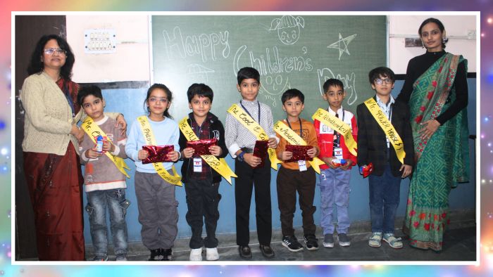 Children's Day was celebrated in the school on 14th November with great joy and excitement. The day began with a Special Morning Assembly conducted by the students of Nursery to Class II. The assembly featured a heartfelt speech by Atharv Yadav (Class I), followed by an English poem recited by Nishtha Singh (Class I) and a beautifully presented Hindi poem by Avayan (Class I). Students of Classes I and II also presented melodious group songs, adding to the charm of the morning.