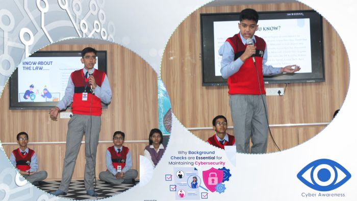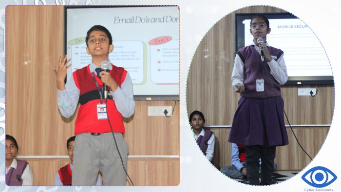 In the Primary Wing, Ms. Kanishka Sharma, Computer Teacher, delivered an informative presentation. She elaborated on the concept of cyber safety, ensuring that younger students understand its importance in a simple and clear manner.