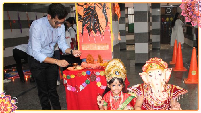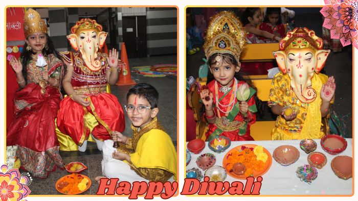 The celebration began with a special morning assembly highlighting the significance of Diwali. This was followed by a Laxmi–Ganesh Pooja conducted by the Pre-Primary Wing, invoking blessings of prosperity and happiness.