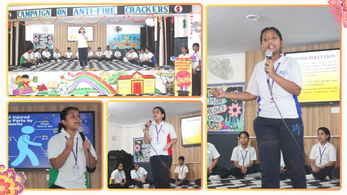 To spread an important environmental message, students of Classes III to VIII presented an impressive PowerPoint Presentation on “Anti Fire Crackers” on 15th October and 18th October respectively. Through this, they highlighted the harmful effects of firecrackers on health and the environment. The celebration concluded with students taking an oath to celebrate a Green Diwali, pledging not to burst crackers and to be responsible citizens of India.