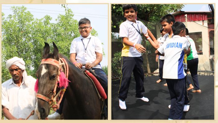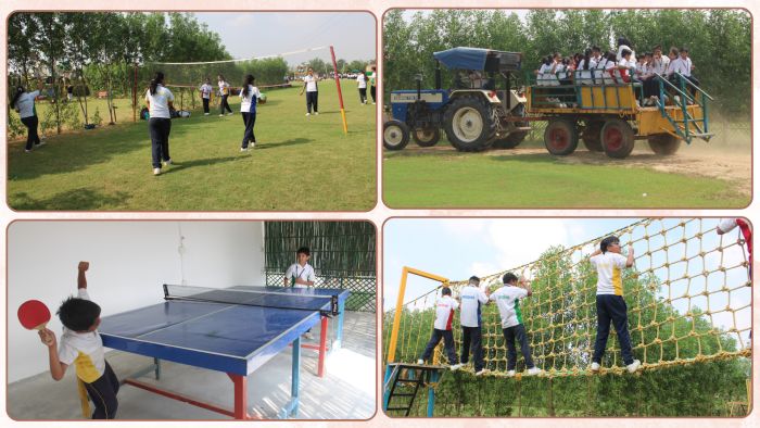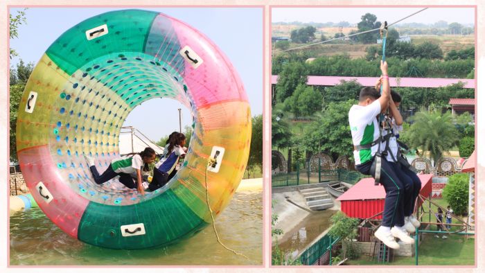 Students participated in a wide variety of thrilling activities such as horse riding, bullock cart rides, zip line, plank bridge, net balance bridge, commando net, rain dance, swimming, and even a mud bath! Each activity brought joy and enthusiasm, keeping everyone engaged throughout the day. Delicious breakfast and lunch were served, along with tasty chaat items that added extra flavor to the outing. The bus ride to and from the resort was equally enjoyable, filled with singing, games, and fun interactions with friends and teachers.