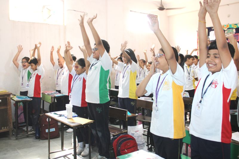 Students of classes III-VIII participated in a laughter therapy session led by our Sports teachers, Ms. Purnima Jhakar and Mr. Arun. The session was filled with contagious laughter, and all the students thoroughly enjoyed themselves.