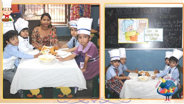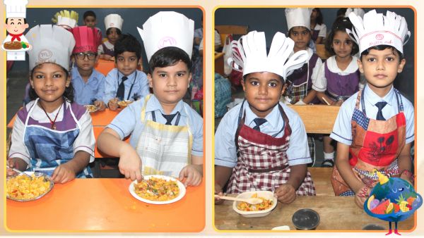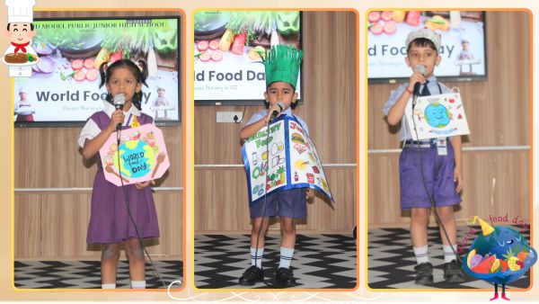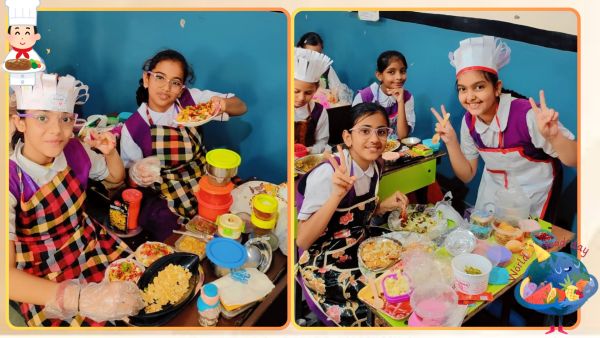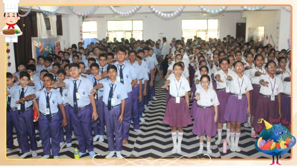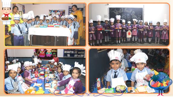 A Special Assembly was organized on 16th October to commemorate World Food Day with great enthusiasm and participation from students across different classes. The event began with an informative PowerPoint Presentation by students of Classes VI to VIII, highlighting the purpose and significance of World Food Day. The presentation aimed to spread awareness about global hunger issues and the importance of healthy eating habits. The assembly also featured creative expressions through poetry. Vedika, a student of Class IIB, recited a heartwarming poem, followed by Jiyansh Joshi and Vedant Dixit of Class KGB, who presented a short poem and an engaging speech on Healthy and Unhealthy Food. Adding to the thoughtful presentations, Divya Meena of Class VII C recited a meaningful poem dedicated to the theme of World Food Day. The highlight of the day was the Flameless Cooking Activity, conducted for students from Nursery to Class V. The activity allowed students to explore their culinary skills while learning the importance of nutritious and safe food. The dishes prepared by various classes were: