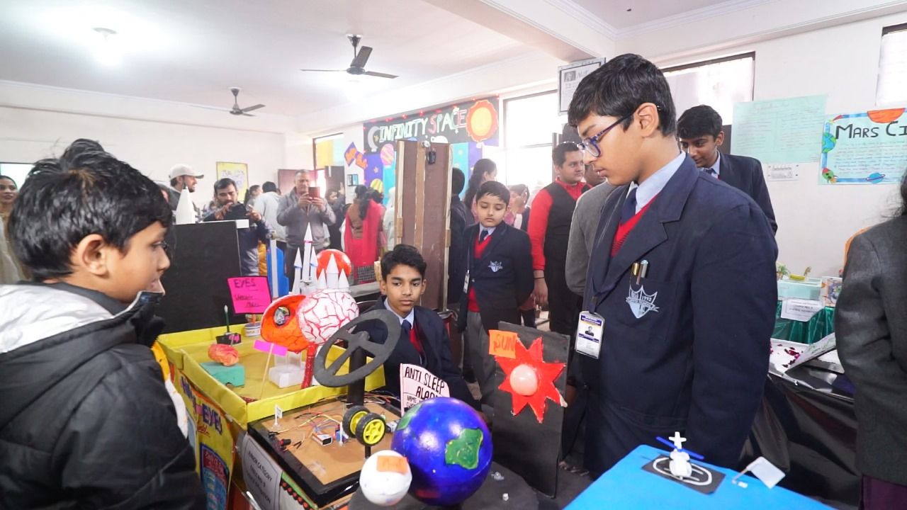 A large number of students from various classes participated in the exhibition with great fervour and unbelievable enthusiasm. The exhibition started at 11:00 a.m. and was open to all the parents and students of the school. This was indeed a majestic programme organised in the history of David School as the gathering observed in the school premises was huge where uncountable number of heads were seen in the premises. This amazing event purely showcased our students' productivity, hardwork and dedication. The exhibition started from the third floor of the building where the rooms were allocated for exhibition of the students exemplary work through their projects and models based on different subjects. Language Exhibition gave a chance to visitors to enjoy some linguistic activities. Little Ramanujans, Aryabhattas and Shakuntala Devis exhibited their models in Mathematics Exhibition. Next to the mathematics room was social studies room which showcased wonderful projects and models of history, geography and political science. Our students brought the past, present and future together through the power of science and showcased the magical experiments and tricks of science. Beautiful art and craft work of students were also put on for display with some wonderful models of sports.